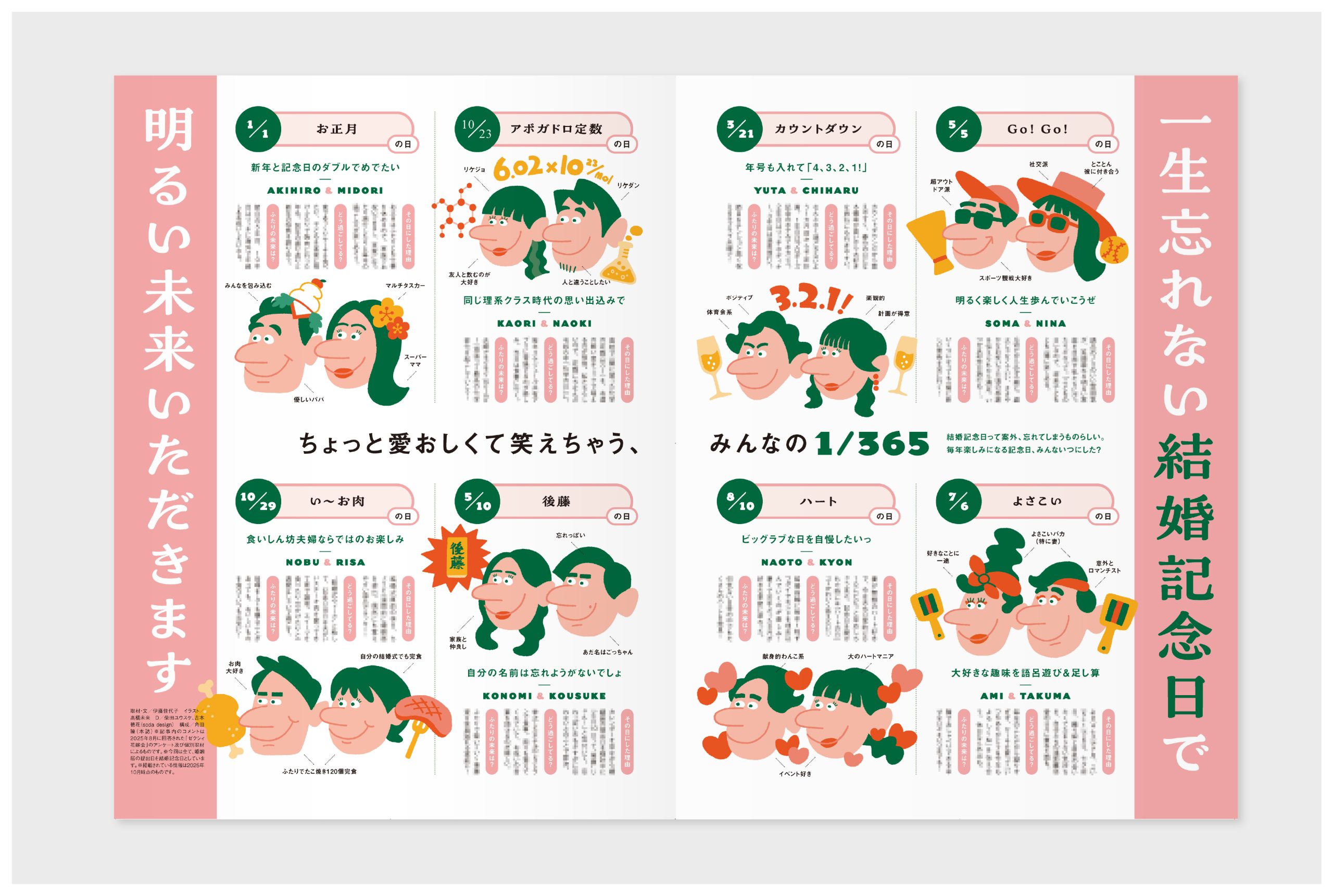 総合結婚情報誌ゼクシィ の結婚記念日に関する特集で、イラストを担当しました。